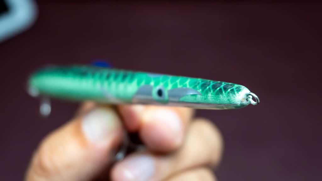 Il punto di forza di questo stickbait/needle è il suo nuoto molto reattivo, che può essere modulato in base alla posizione della canna: